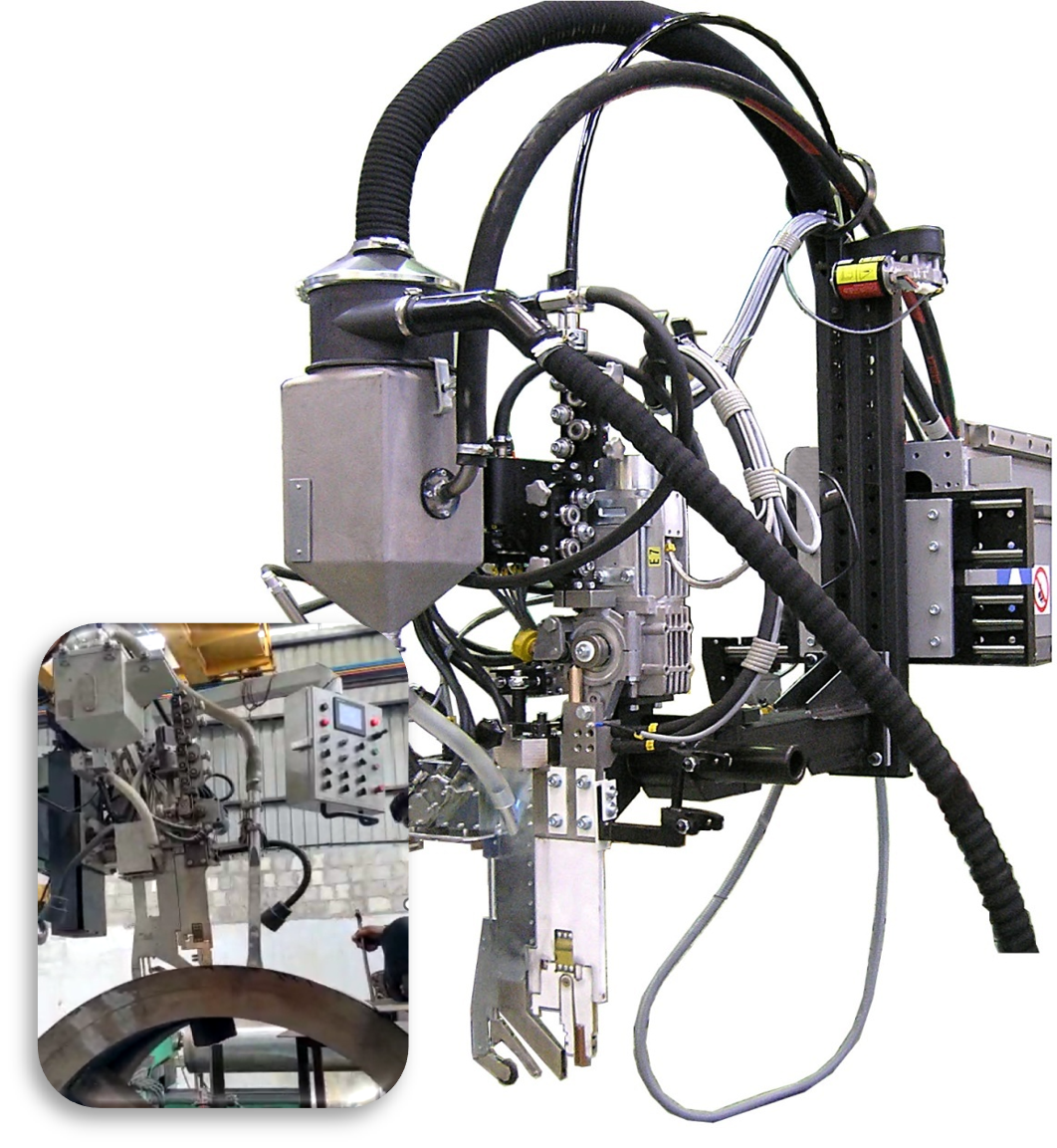 The installation is for internal vertical hole or valve line automatic cladding. Cold TIG/hot wire TIG welding processes.